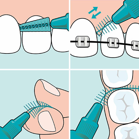 - Brush away plaque between teeth.